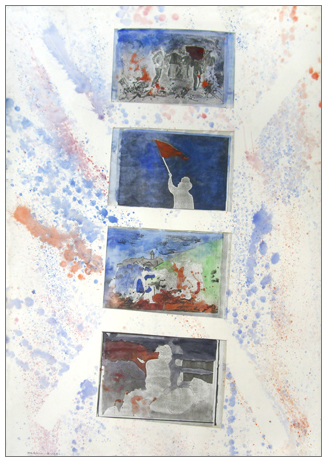 FRANCO ANGELI Roma 1935 – 1988 Senza titolo Pittura, t.m. e collage su cartoncino 100 x 70. Firma in b. a s.