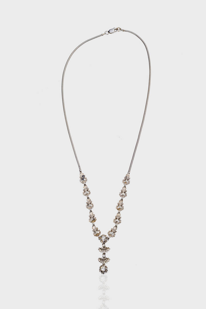 in oro bianco; maglia a coda di topo, anni '50, al centro fiori con diamantini taglio brillante e 8/8 per totali ct 0,55 ca