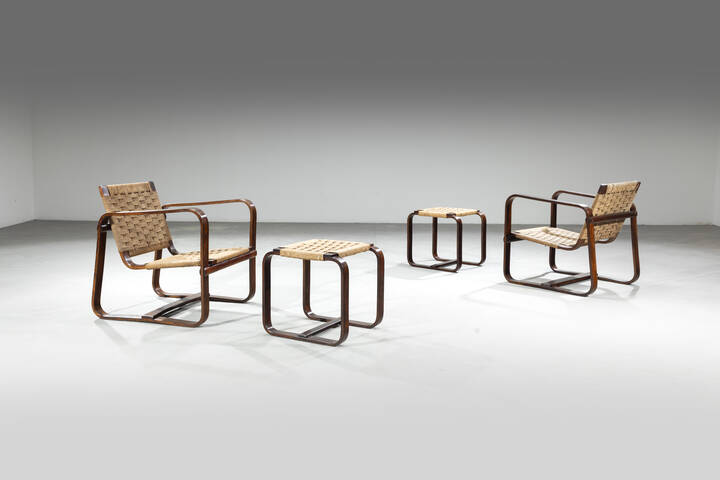 GIUSEPPE PAGANO POGATSCHNIG<BR>Coppia di poltrone con pouff