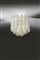 Struttura in metallo verniciato ed elementi in vetro colorati.