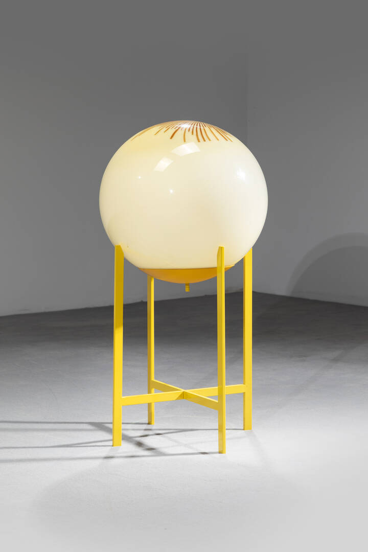 Struttura in metallo verniciato, diffusore in vetro colorato.