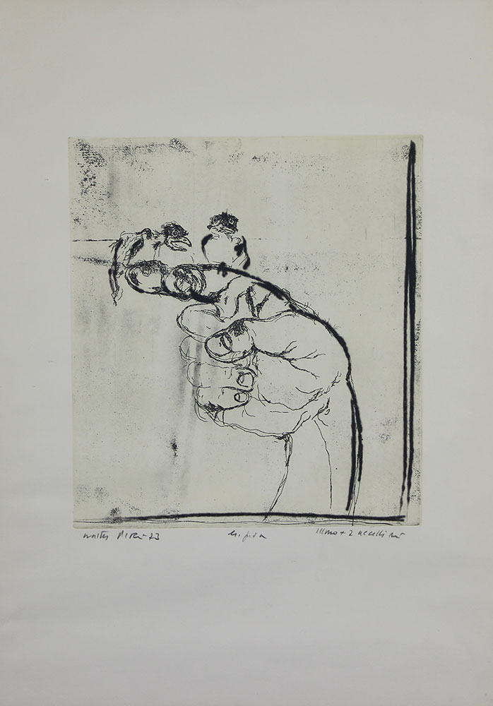 Piacesi Walter Mano + 2 uccellini, 1973 incisione su carta, cm. 69x49 (lastra...