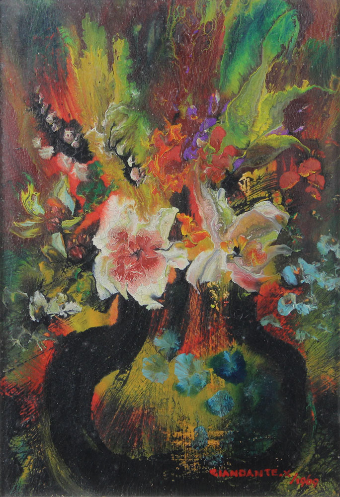 Giandante X Vaso di fiori, 1969 olio su tavola, cm. 50x35 firmato e datato in basso a destra