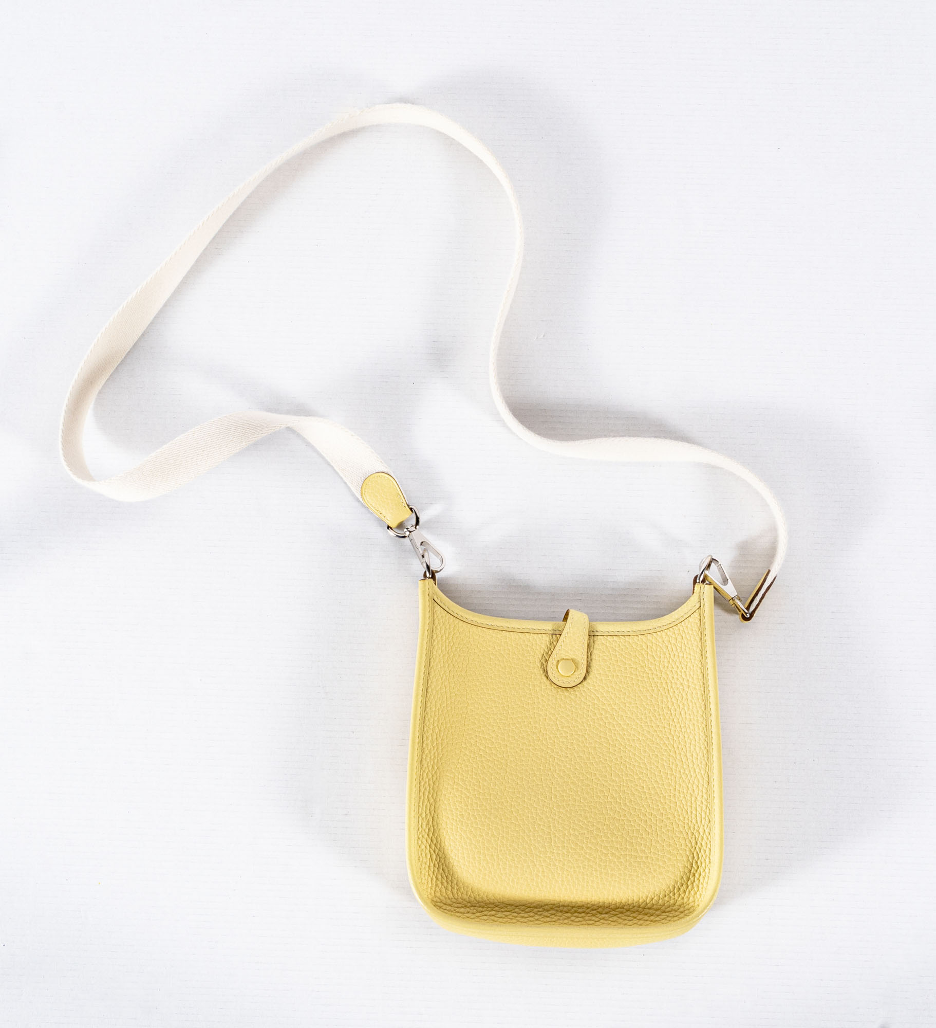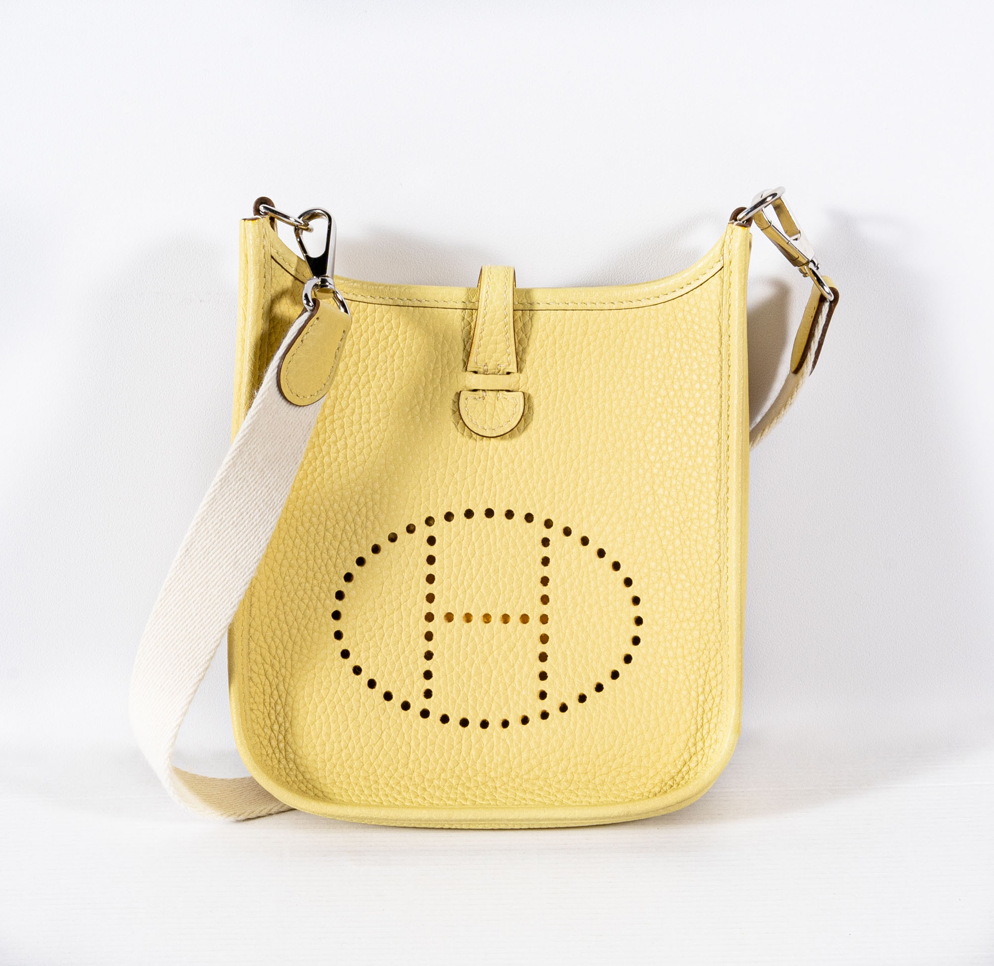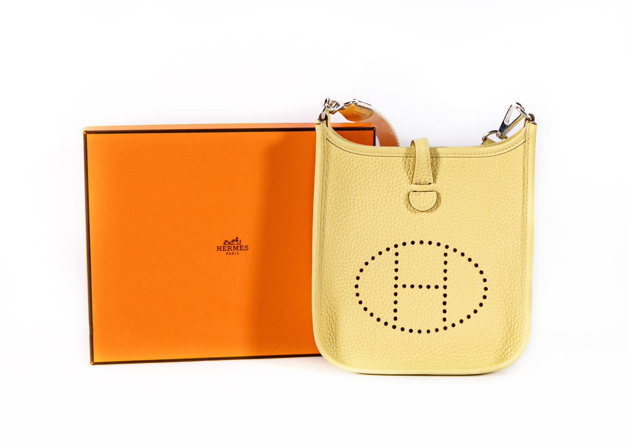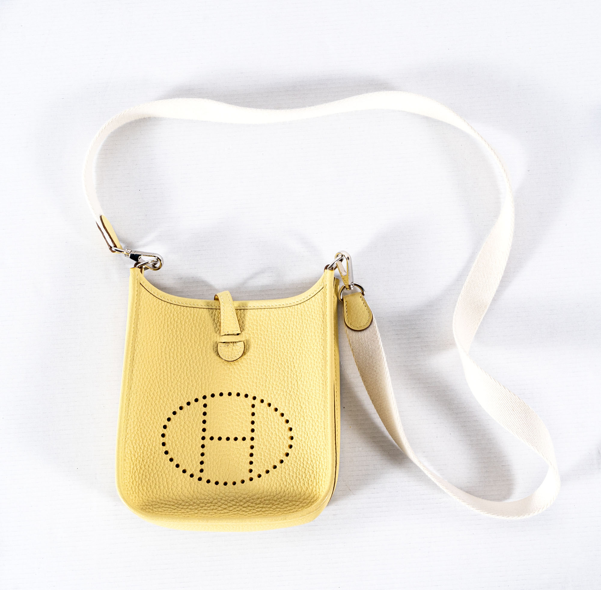 HermèsBorsa Evelyne TPM2020In pelle clemence bamboo, tracolla in tela e dettagli in metallo palladium18 x 17 x 5 cmCorredata di sacchetto, scatola e ricevuta di acquistoPari al nuovo