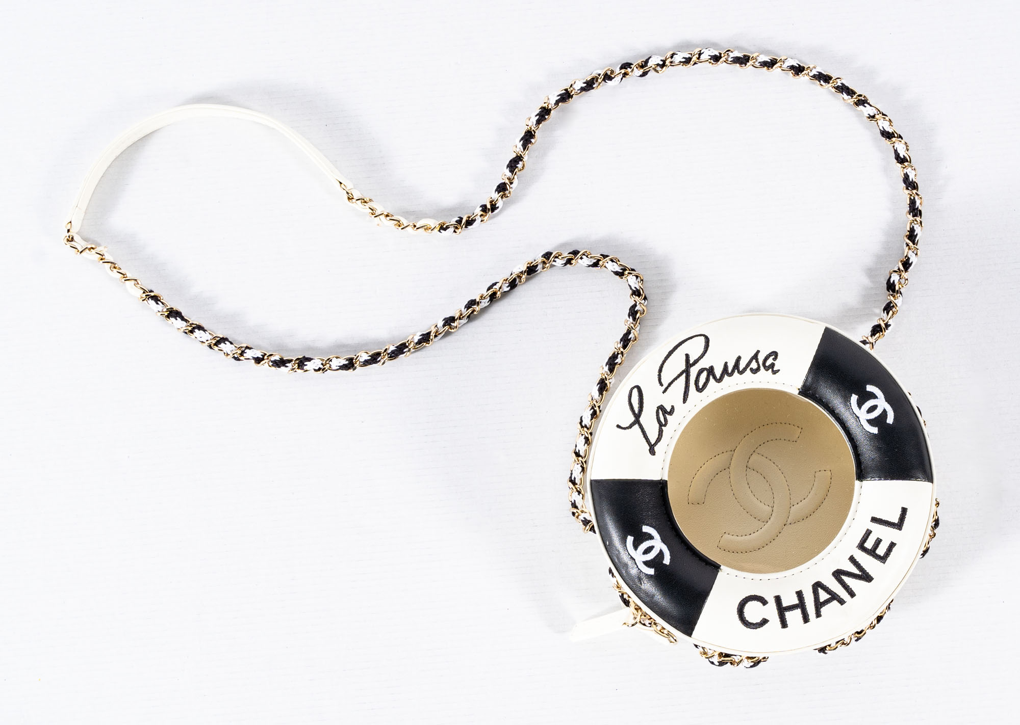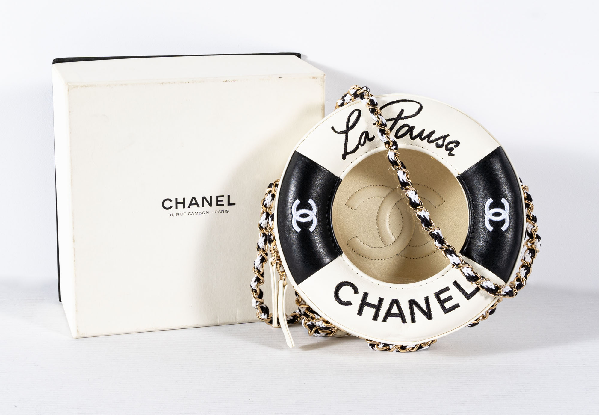 CHANELBorsa Cruise 19 La Pausa Lifesaver Limited Edition2017 - 2018Borsa in pelle, vinile e dettagli in metallo dorato17 x 17 x 6 cmCorredata di codice seriale, sacchetto e scatolaPari al nuovo