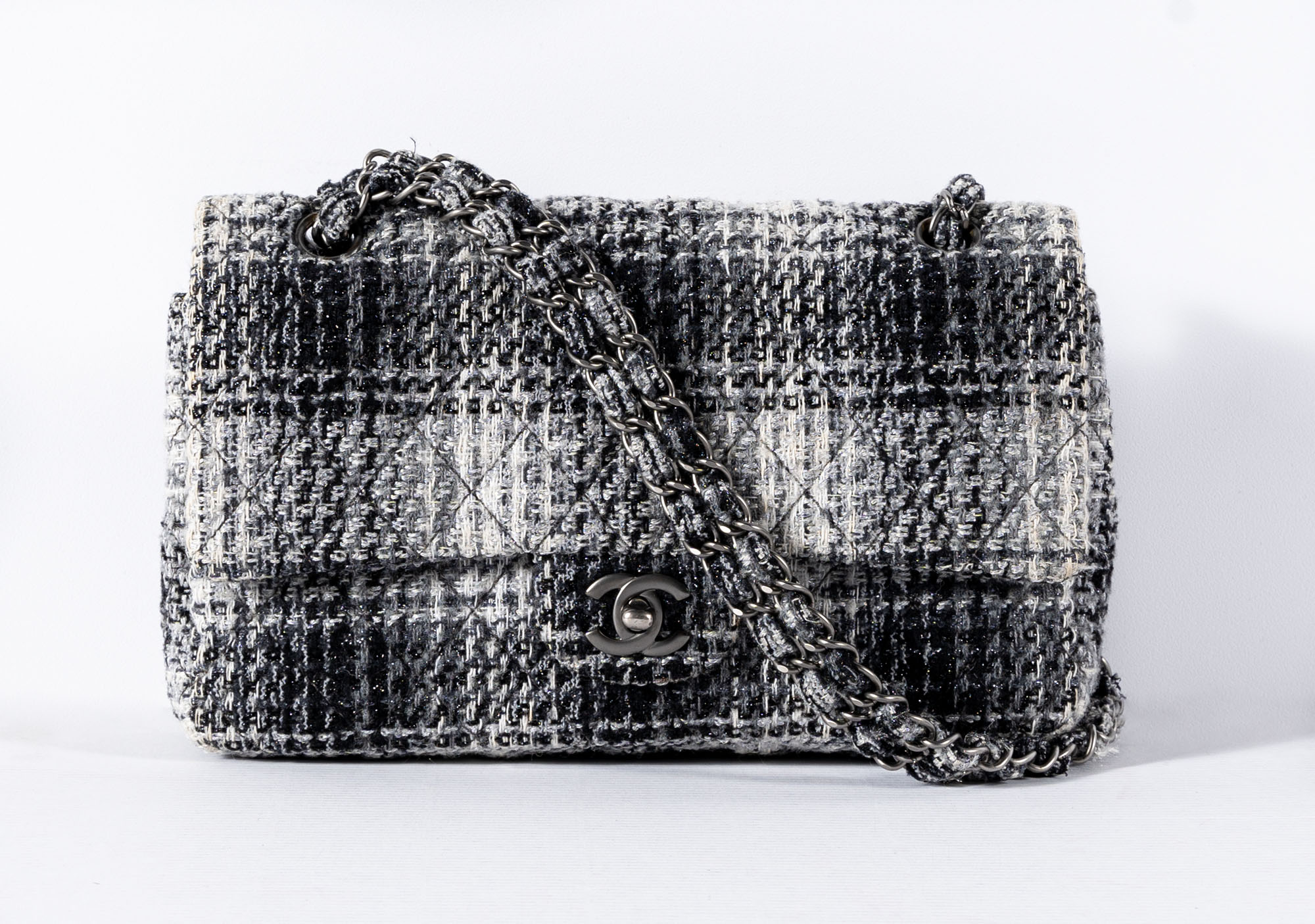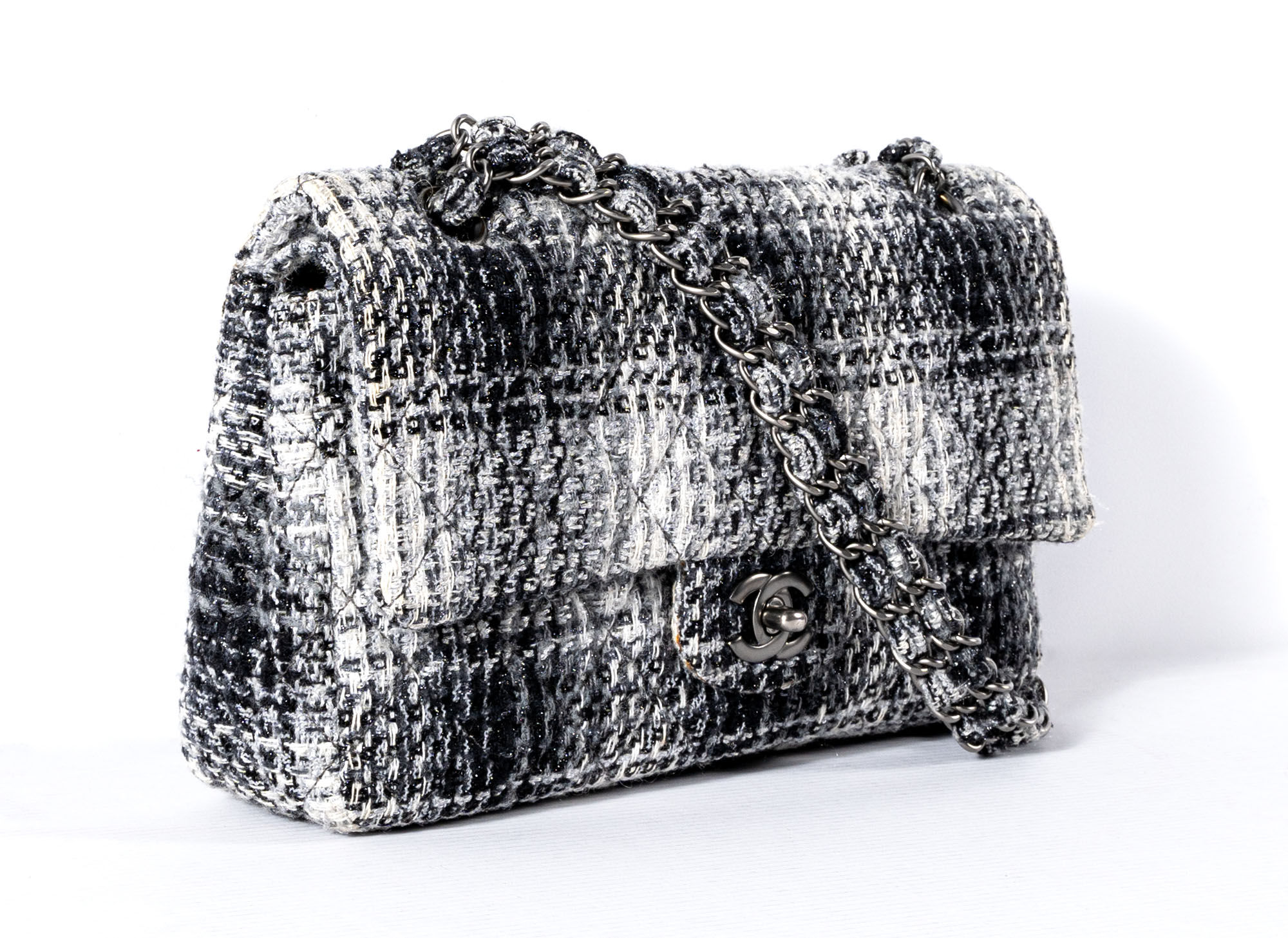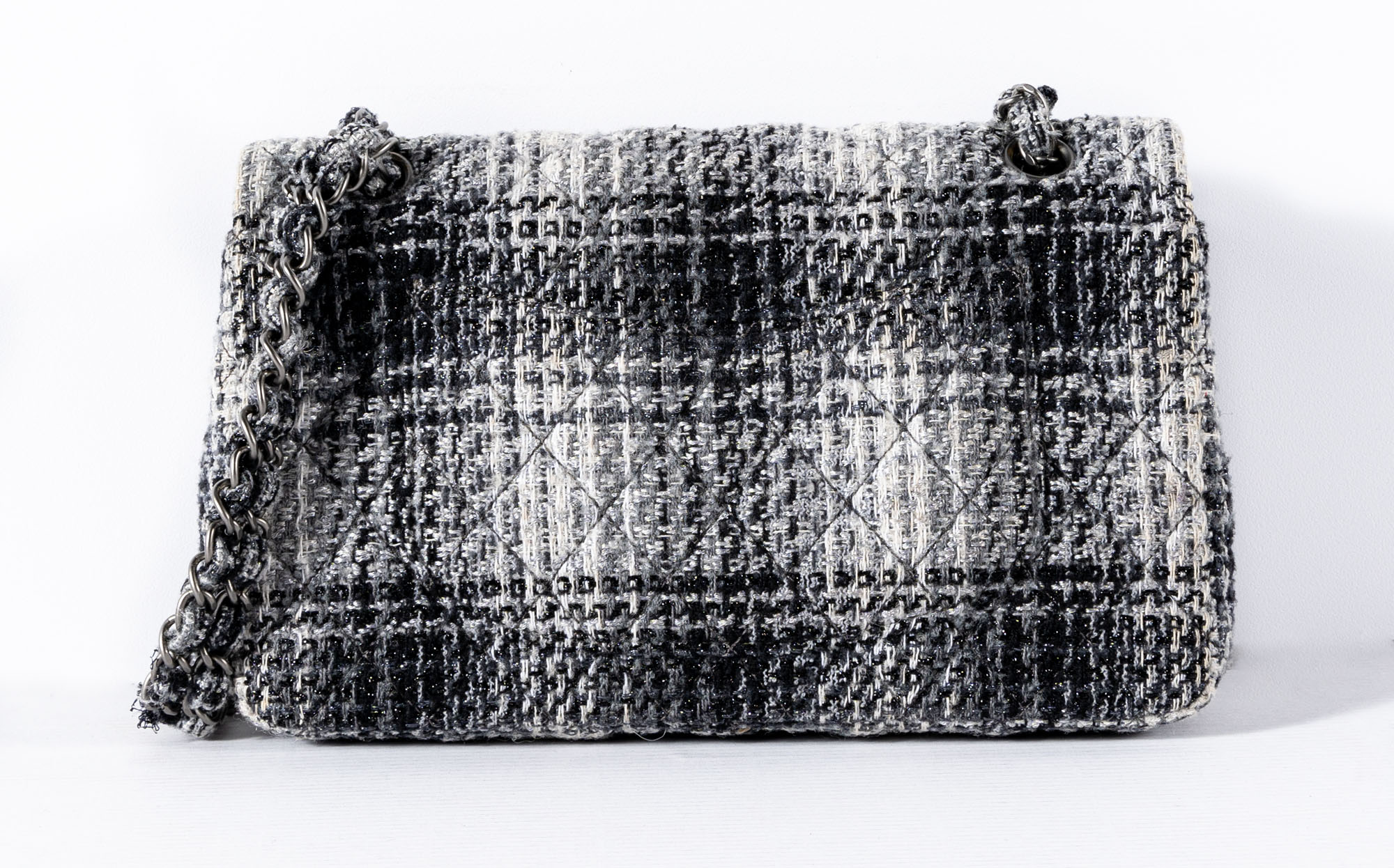 CHANELBorsa Timeless Doppio Flap1989 - 1991In tessuto tweed matelassé e dettagli in metallo argento15 x 25 x 6 cmCorredata di codice serialeIn ottime condizioni