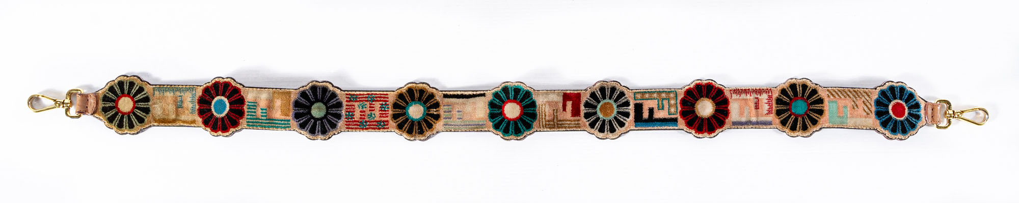 FENDITracollaIn pelle, velluto e dettagli in metallo doratoLunghezza 80 cmCorredata di sacchettoSegni di uso