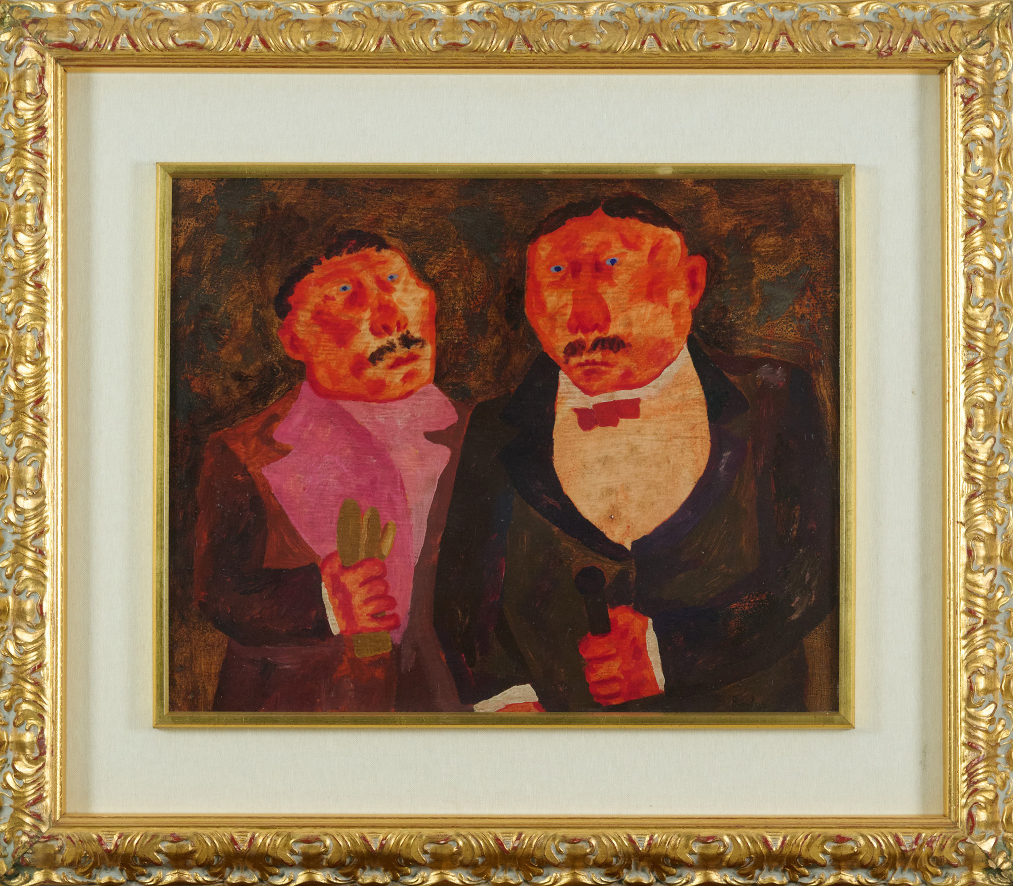 Franz Borghese (Roma, 1941 - Roma, 2005) Due personaggi Anni '70 Olio su tela...