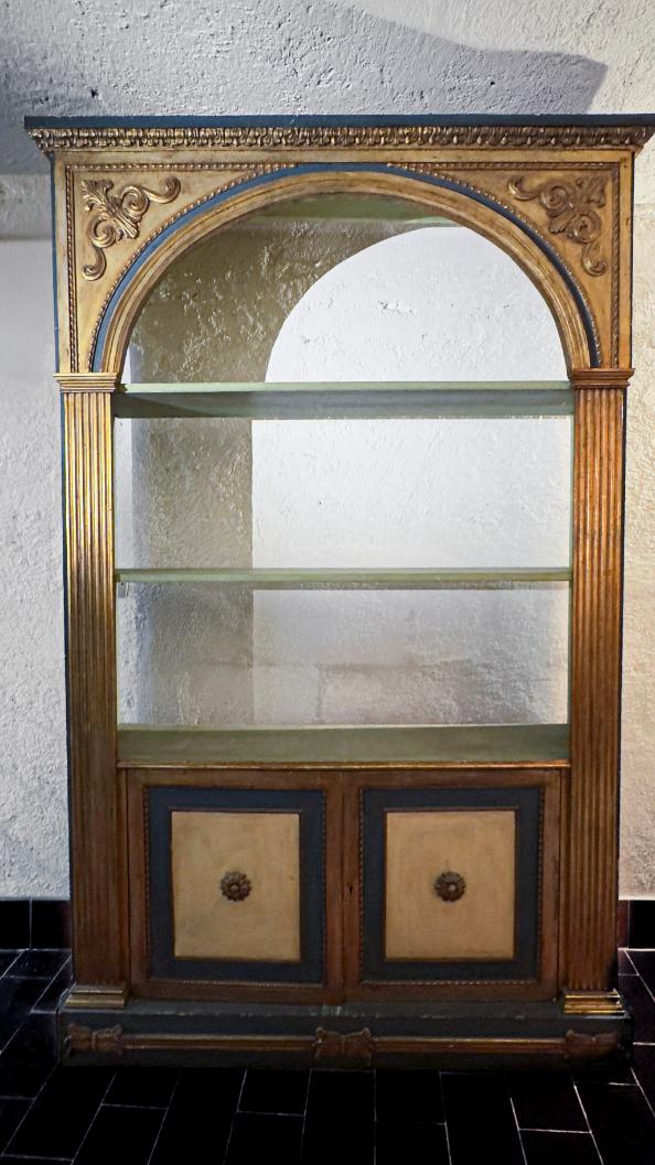 Libreria in legno laccato e dorato in stile, XX secolo 228x139x31 cm