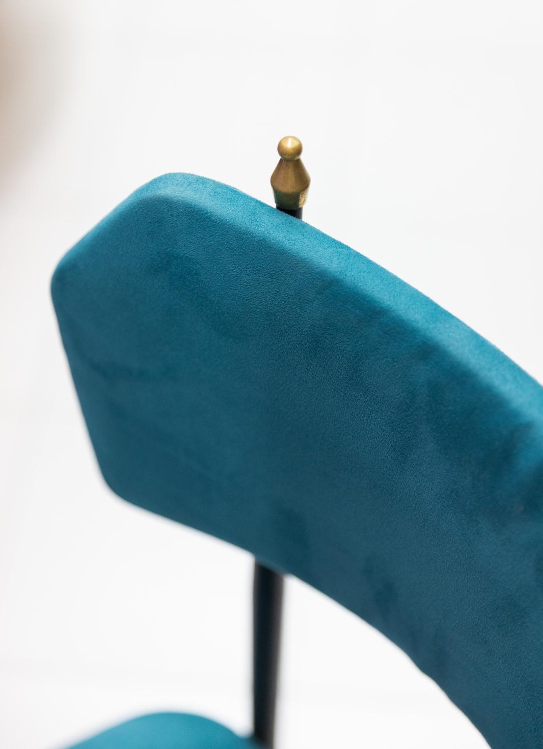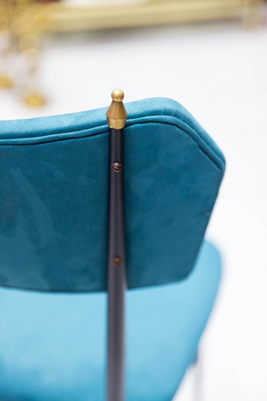 Set di 6 sedie anni '50 più tavolo design Mascagni in ferro, puntali in ottone e vetroelite in oro antico , XX secolo
