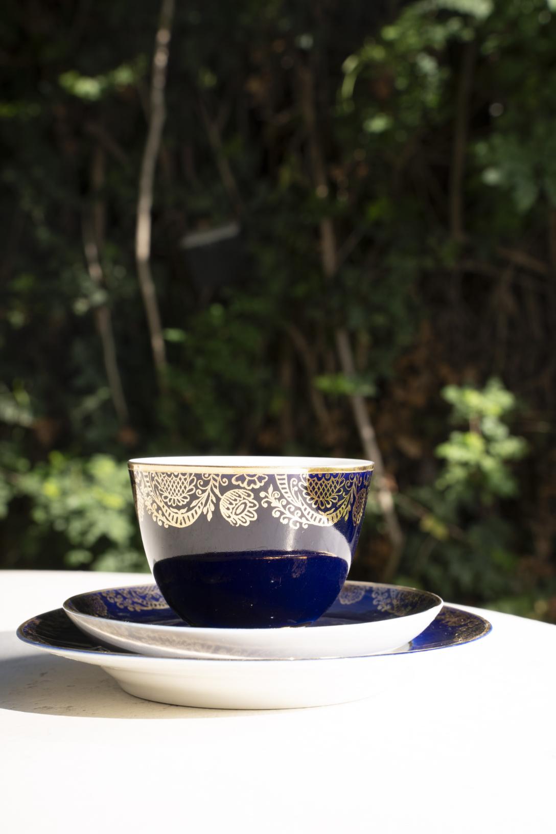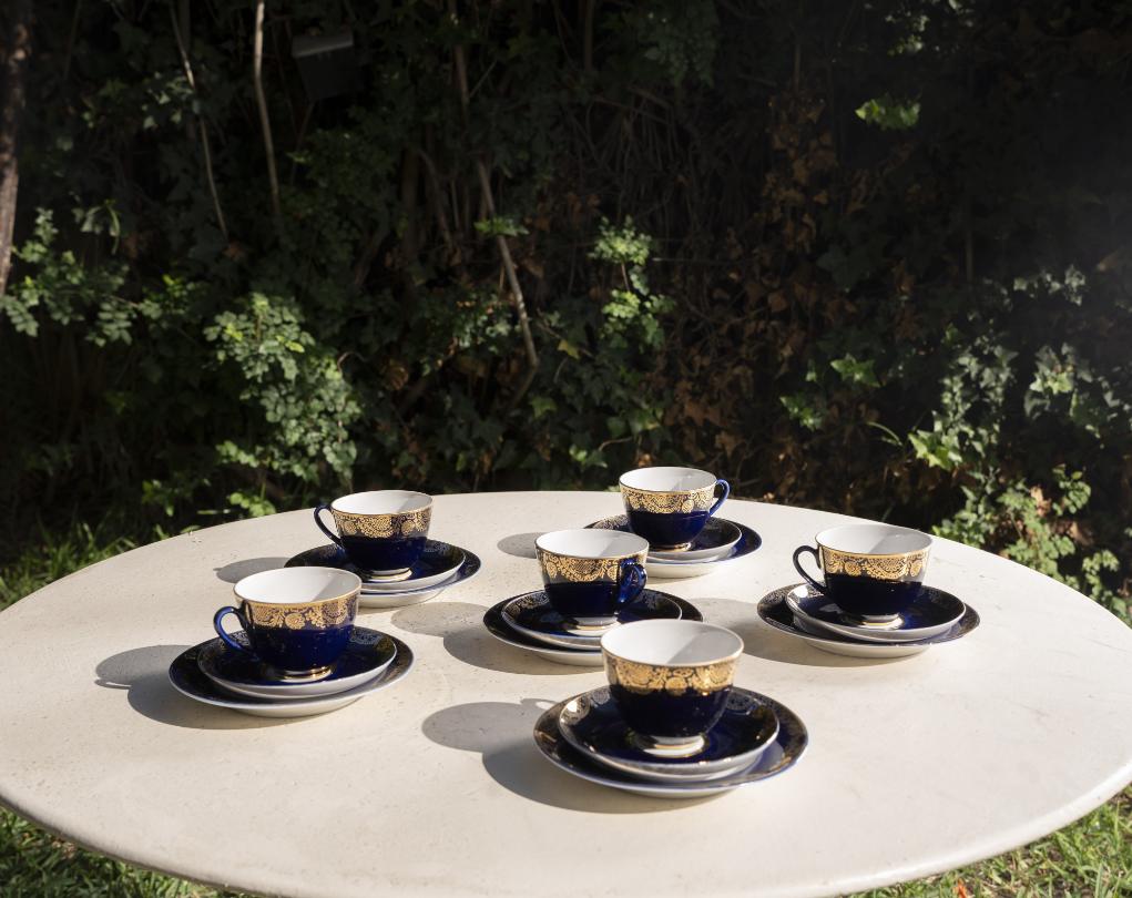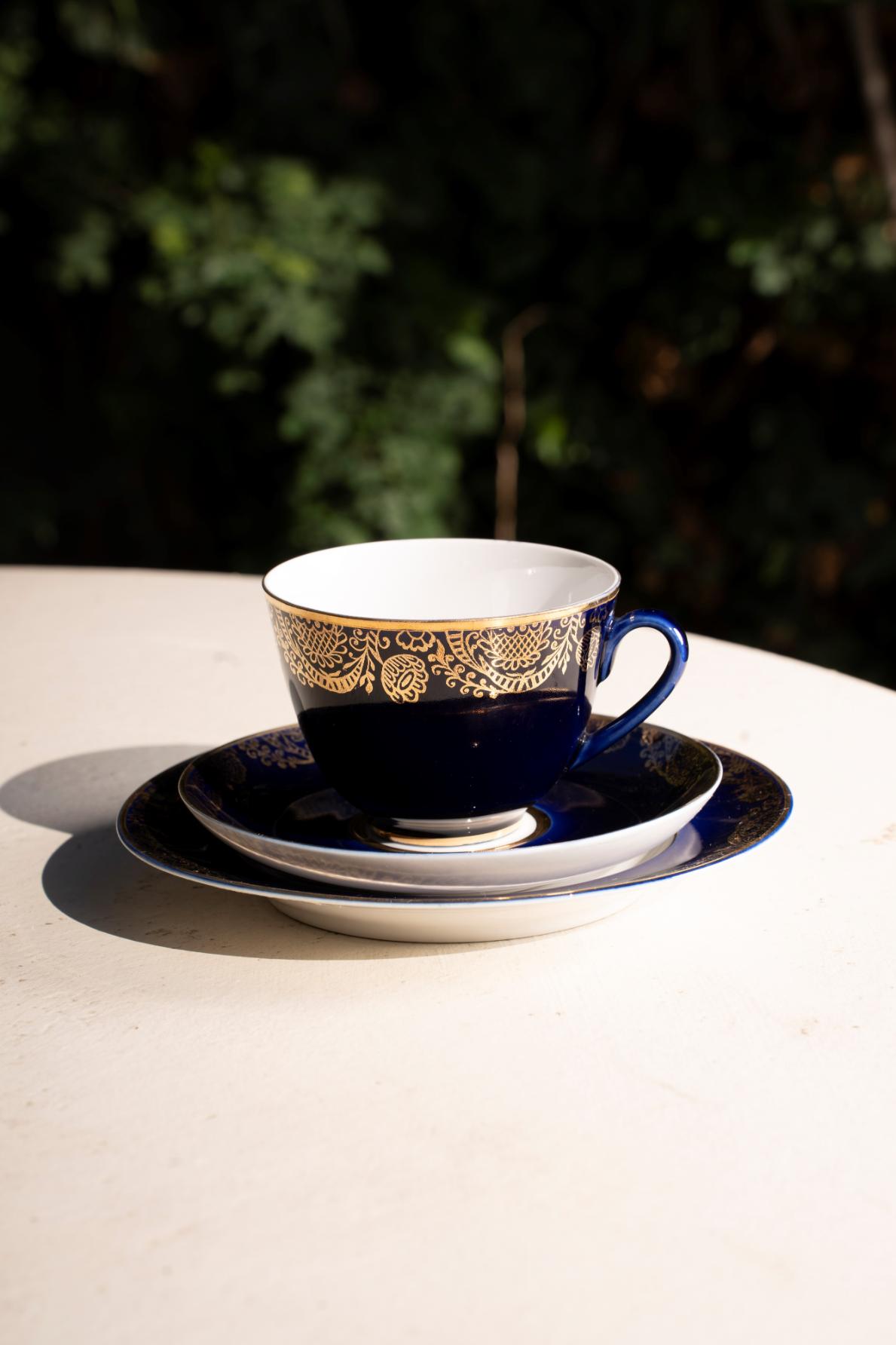 Set da thè blu cobalto e oro made in URSS, XX secolo