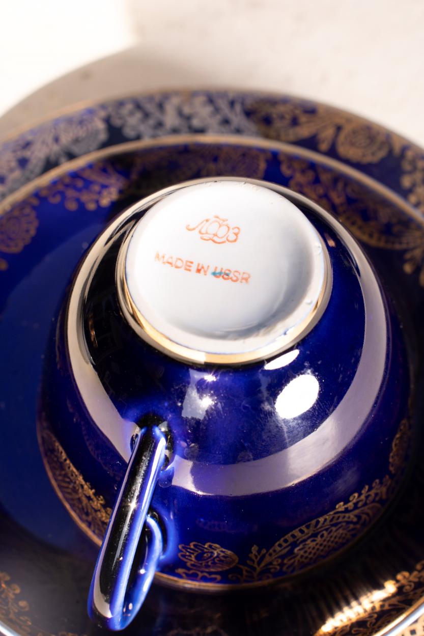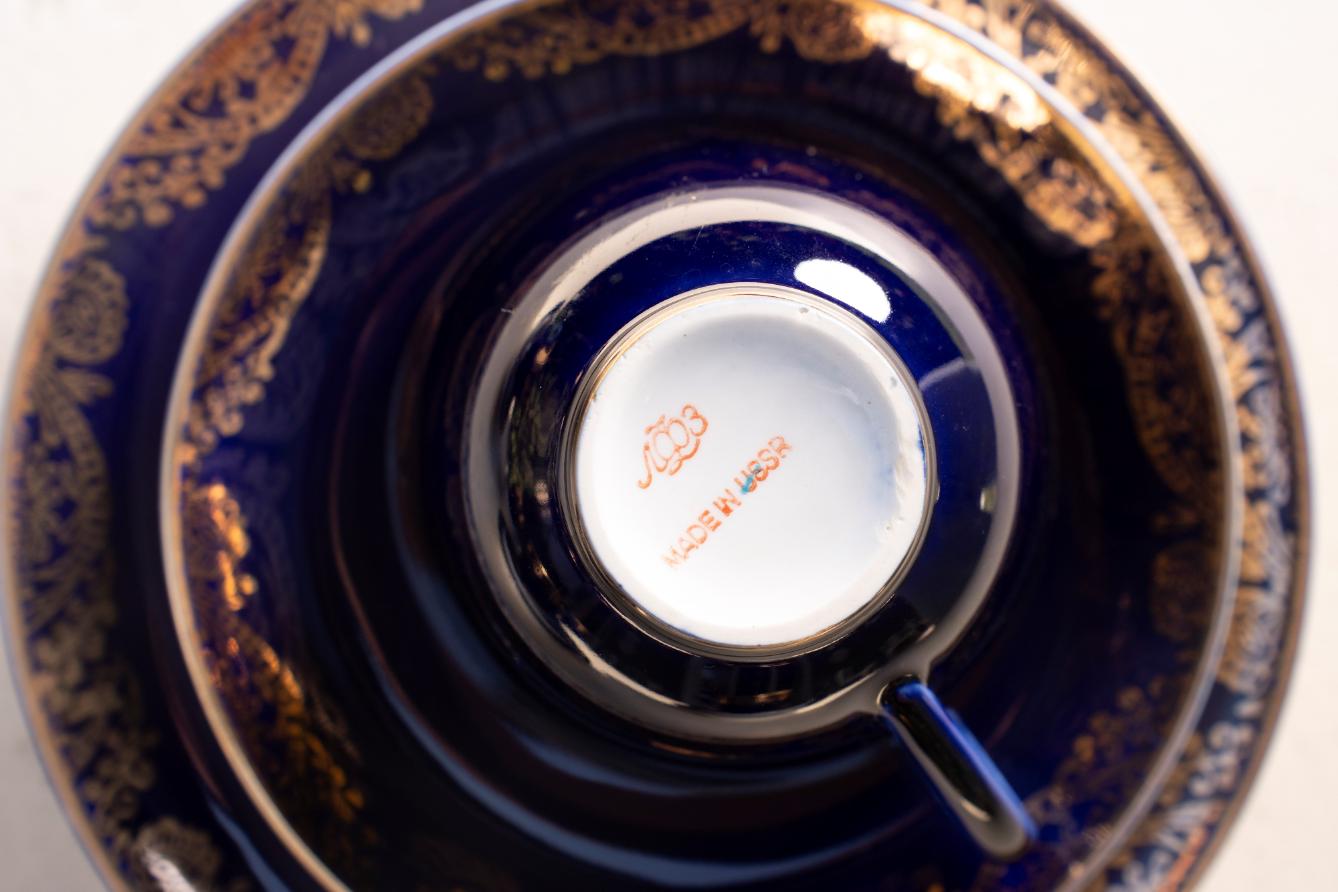 Set da thè blu cobalto e oro made in URSS, XX secolo Compost da 6 tazze, 6...