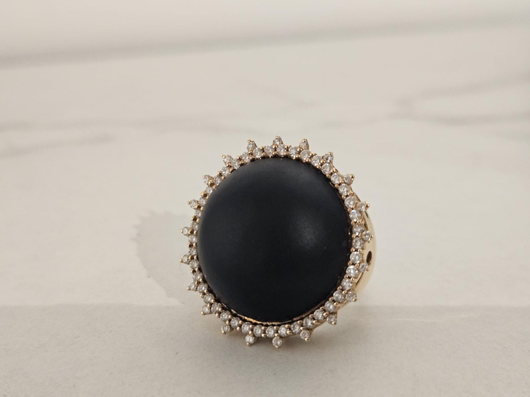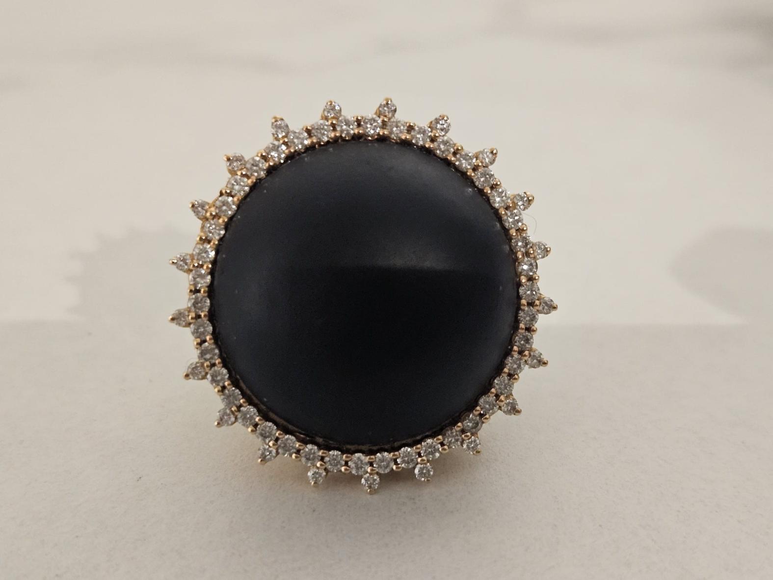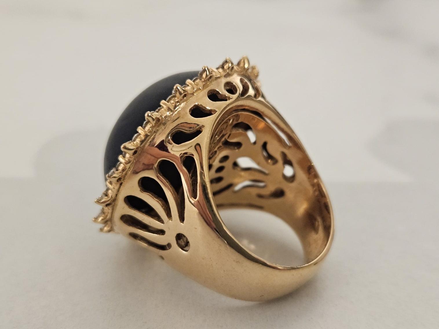 Lotto 168 | Anello con pietra nera e brillantini Oro 18kt e piccoli diamanti. 20.9 gr.