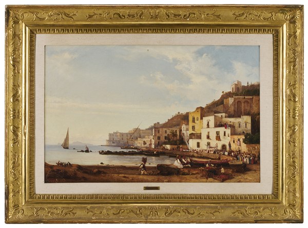 Giacinto Gigante "Napoli, una processione a Mergellina" 1839 olio su tela (cm 57