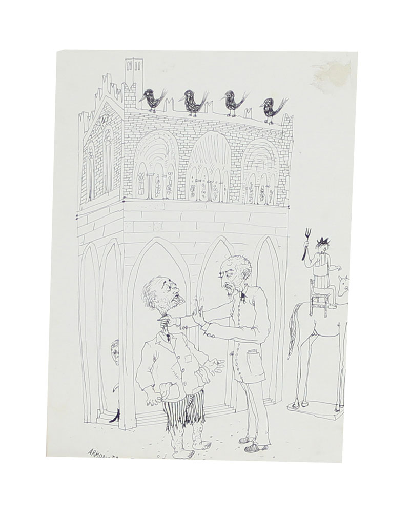 Armodio Usura a Piacenza, 1958 china su carta, cm. 27x19,5 firmata e datata in basso a sinistra senza cornice