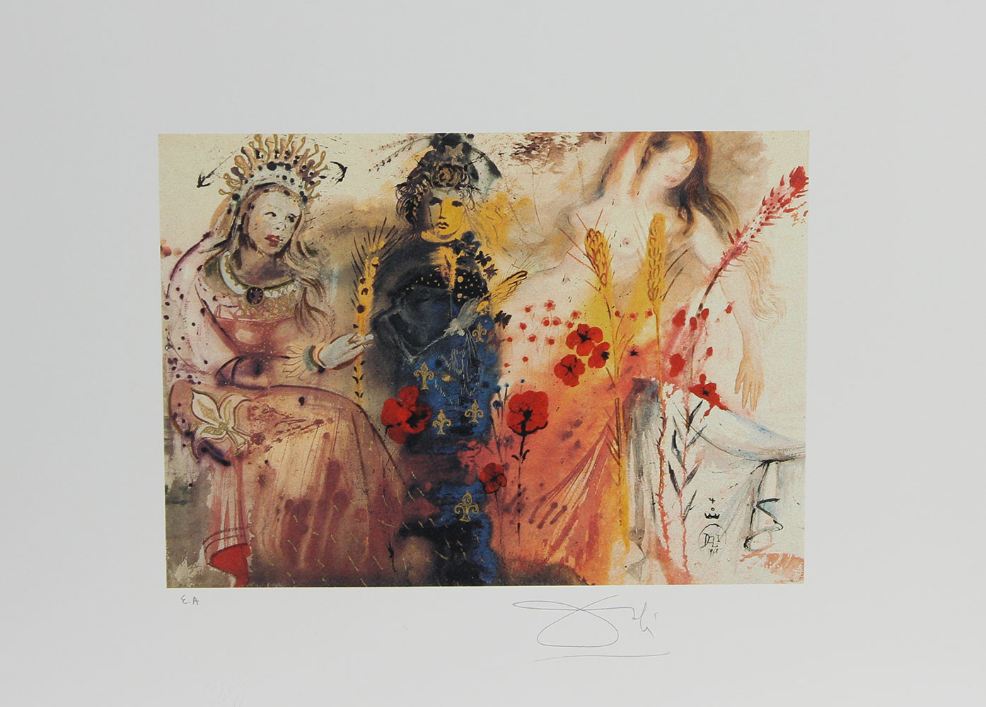 Dalì Salvador Senza titolo litografia su carta, cm. 50x68, es. E.A. firmata in basso a destra, timbro a secco in basso a sinistra, etichetta Edición Gaceta Española de Arte Contemporáneo di Madrid al retro senza cornice