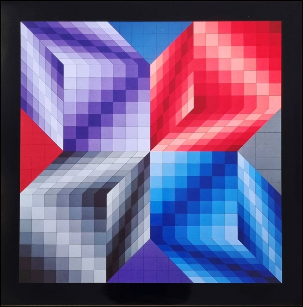 VASARELY VICTOR Ungheria 1906 - Parigi 1997 "Kub-Stri" Stampa a schermo multiplo cm 41x41, del 1972-73. Editions du Griffons, Suisse.