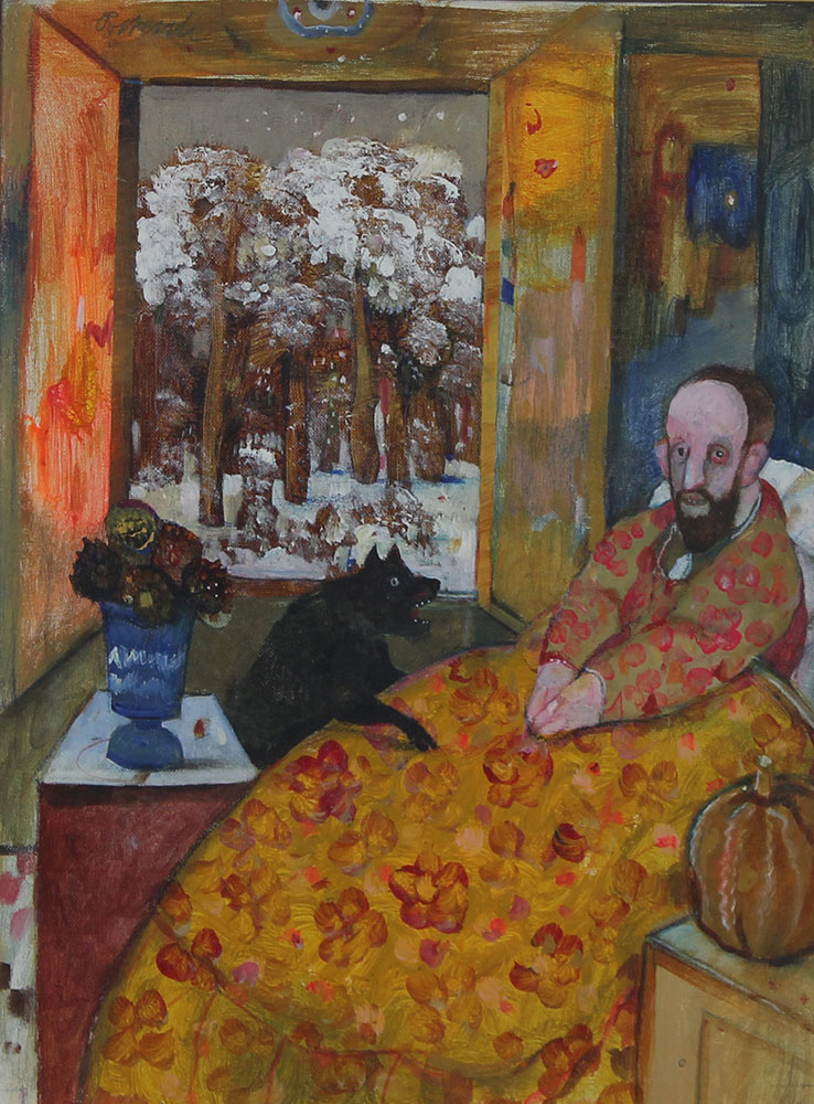 Possenti Antonio Una stanza d'inverno olio su cartoncino telato, cm. 40x30 firmato in alto a sinistra, firmato e intitolato al retro, timbro e firma Il Torchio di Milano al retro