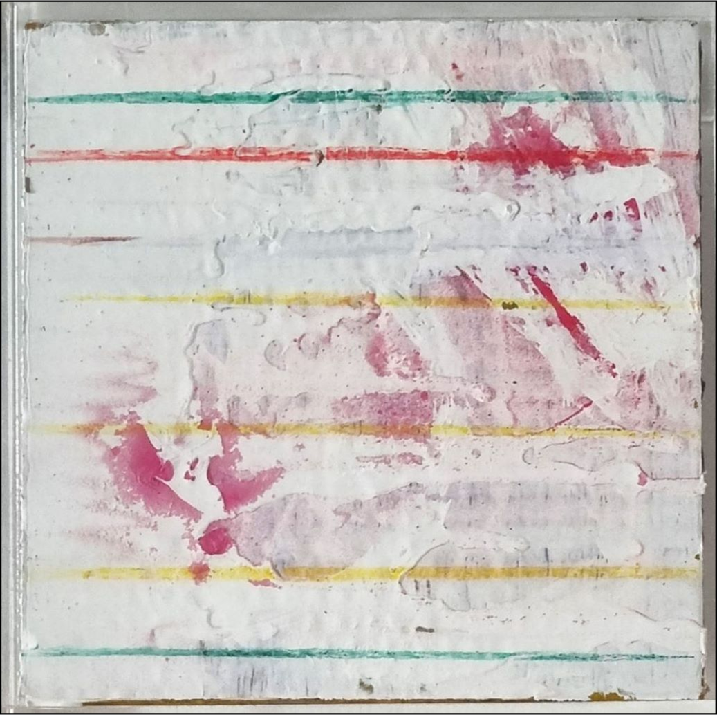 MASI PAOLO Firenze 1933 "Senza titolo" Tecnica mista su cartone cm 20x20, del 2020. Firmata e datata al retro. Opera contenuta in teca di plexiglass. Autentica su foto a cura del Maestro.