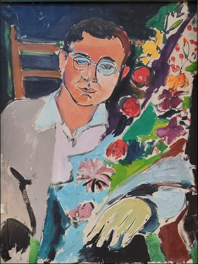 MONACHESI SANTE Macerata 1910 - Roma 1991 "Il poeta" Olio su tela cm 60x80 del 1940. Sul retro firma per autenticità e dicitura "provenienza studio del maestro". Certificato di garanzia ed autenticità di altra casa d'aste. Provenienza "La Barcaccia" Roma, Archivio Monachesi.
