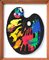 CAVELLINI GUGLIELMO ACHILLE Brescia 1914 - 1990 "Carbone bruciato" Tavolozza in carbone bruciato, colori e tempere, in cornice di legno cm 44x54, del 1970. Sul retro timbro a secco a cura dell'Archivio Storico Cavellini. Archiviazione a cura dell'Archivio Cavellini, certificato di autenticità a cura di Vimarte.