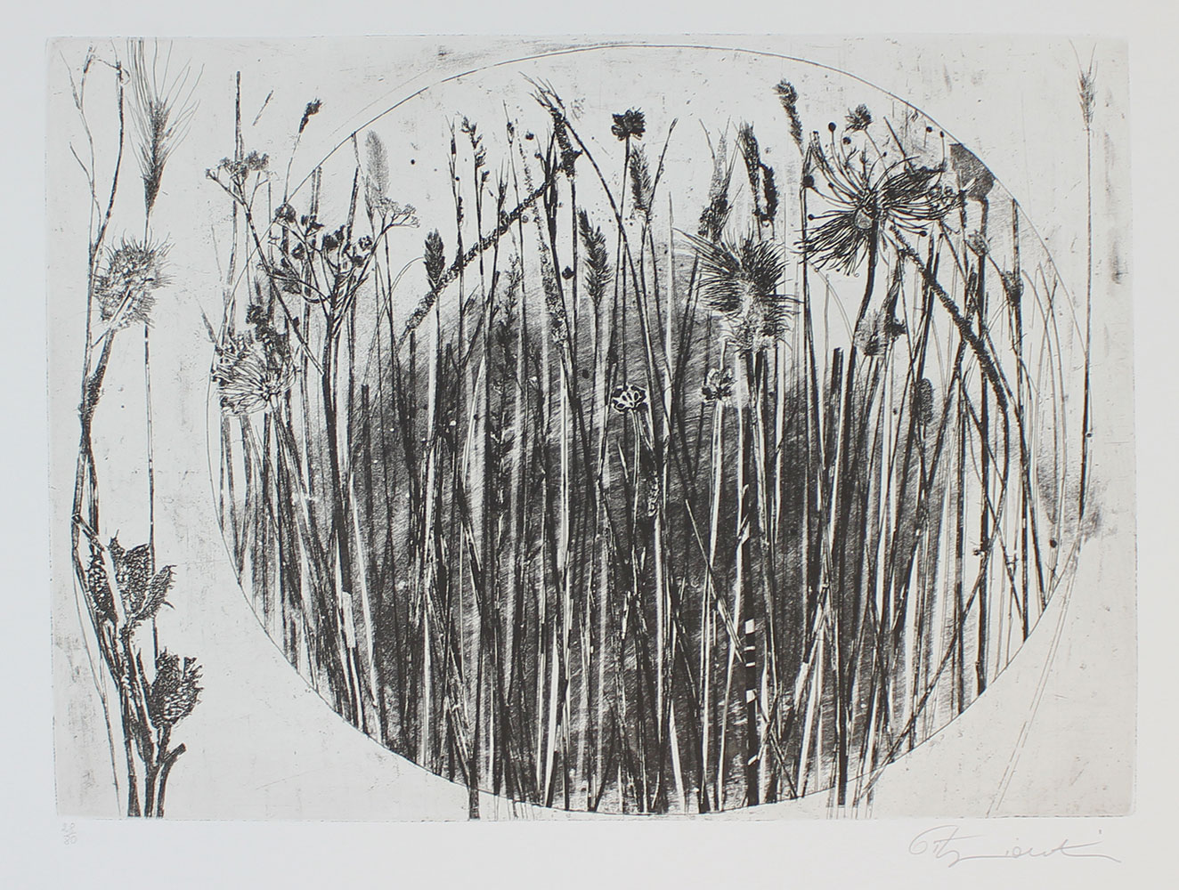 Pitzianti Paola Un prato da calpestare, 1973 acquaforte su carta, cm. 50x70, es. 28/80 firmata in basso a destra, certificato di autenticità della Graphis Arte - Livorno