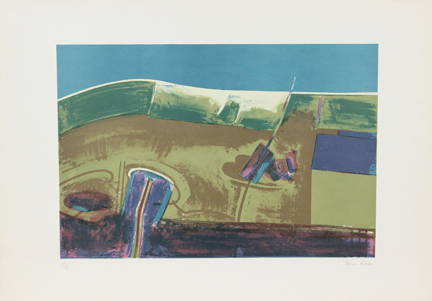 Rossi Ilario Senza titolo litografia su carta, cm. 50x70, es. 10/75 firmata in basso a destra,timbro a secco Cooperativa Opera Artistica Modena in basso a destra, etichetta dell'Associazione per la diffusione dell'opera artistica al retro