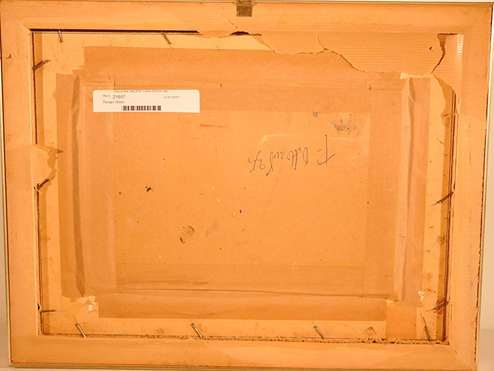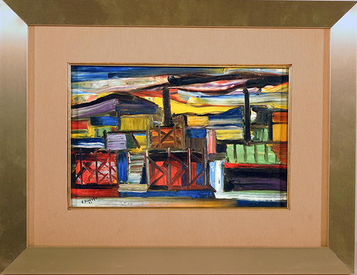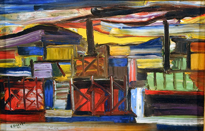 Piscopo Vittorio (Acerra, NA 1913 - Napoli 2004) Paesaggio olio su cartone, cm 20x30,5 firmato e datato in basso a sinistra: Lippi 54