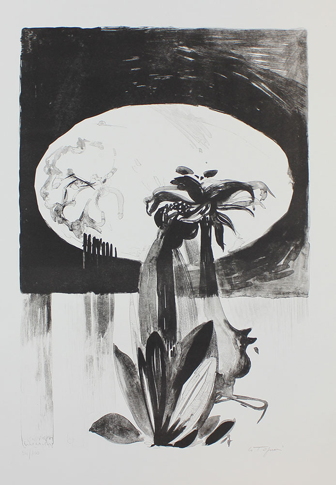 Tognoni Giancarlo Fiori, 1969 litografia in nero su carta, cm. 70x50, es. 54/80 firmata in basso a destra, certificato di autenticità della Graphis Arte - Livorno