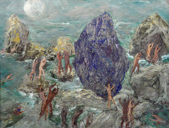 Girosi Franco (Napoli 1896 - 1987) Bagnanti tecnica mista su tavola, cm 70x90 firmato di lato a destra: Girosi