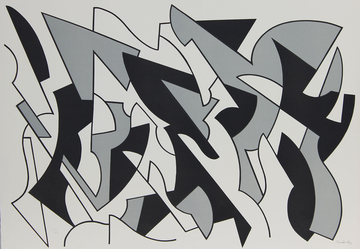 Tomshinsky Stanley Senza titolo litografia su carta, cm. 49,5x70, es. VIII/XXV firmato in basso a destra, timbro a secco della Litoinvest in basso a sinistra, certificato di autenticità della Litoinvest di Milano al retro senza cornice