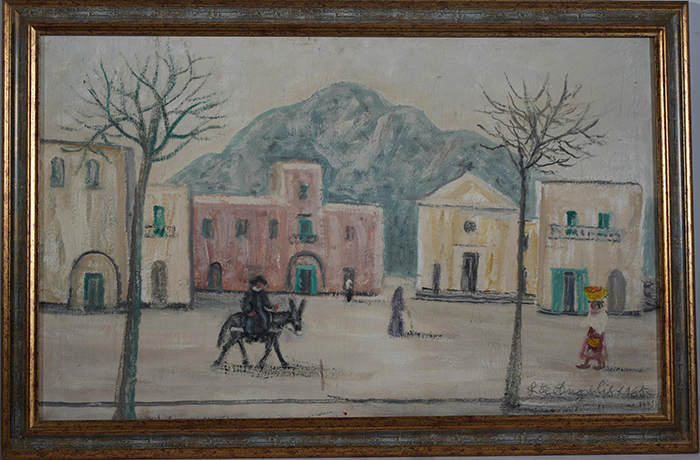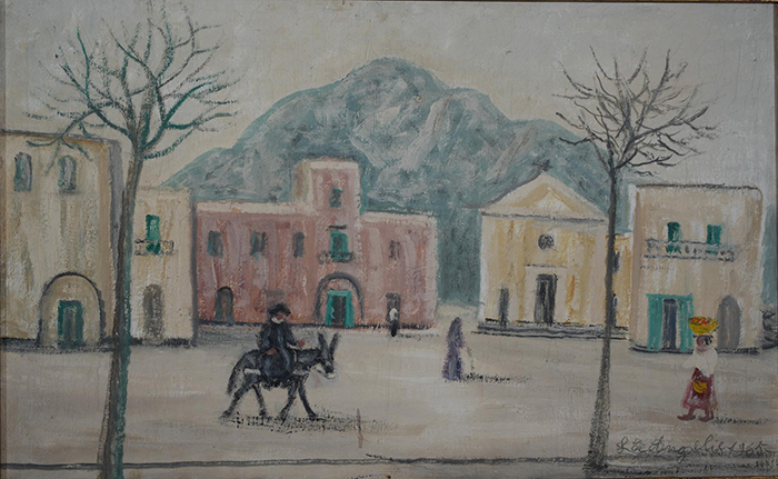 De Angelis Luigi (Ischia, NA 1881 - 1966) In piazza olio su tela,cm 42x66,5 firmato e datato in basso a sinistra: L. De Angelis 1965