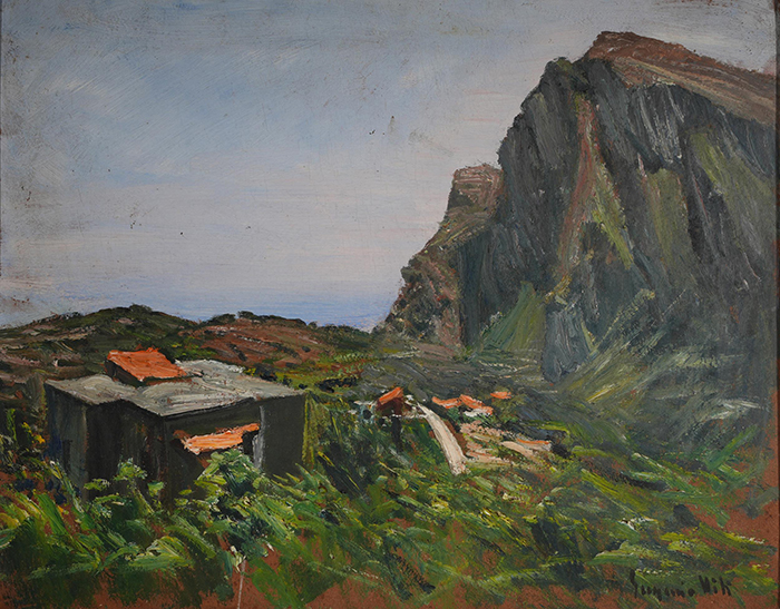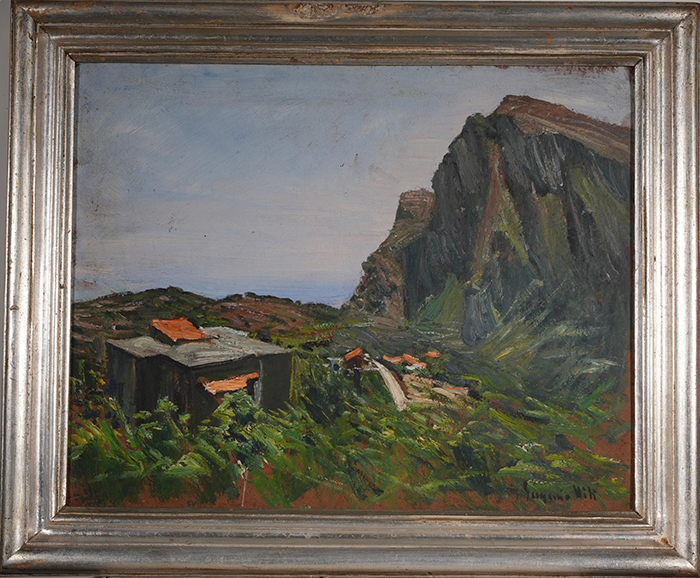 Viti Eugenio (Napoli 1885 -1952) Paesaggio olio su cartone, cm 39x49 firmato in basso a destra: Eugenio Viti