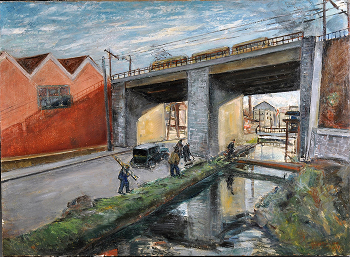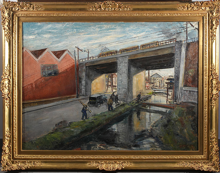 Casciaro Guido ( Napoli 1900 -1960 ) Napoli periferica olio su tela cm 73,6x101 firmato e datato in basso a destra:Guido Casciaro a XV A tergo cartiglio:; Mostra d'Arte italiana all'Estero, Varsavia ESPOSIZIONI: Varsavia, 1937; Napoli,Galleria Vincent , Mostra retrospettiva di Guido Casciaro , 25 ,marzo-30 aprile 2006 BIBLIOGRAFIA : Guido Casciaro a cura di R.Caputo, Edizioni Vincent , tav. 47 a colori