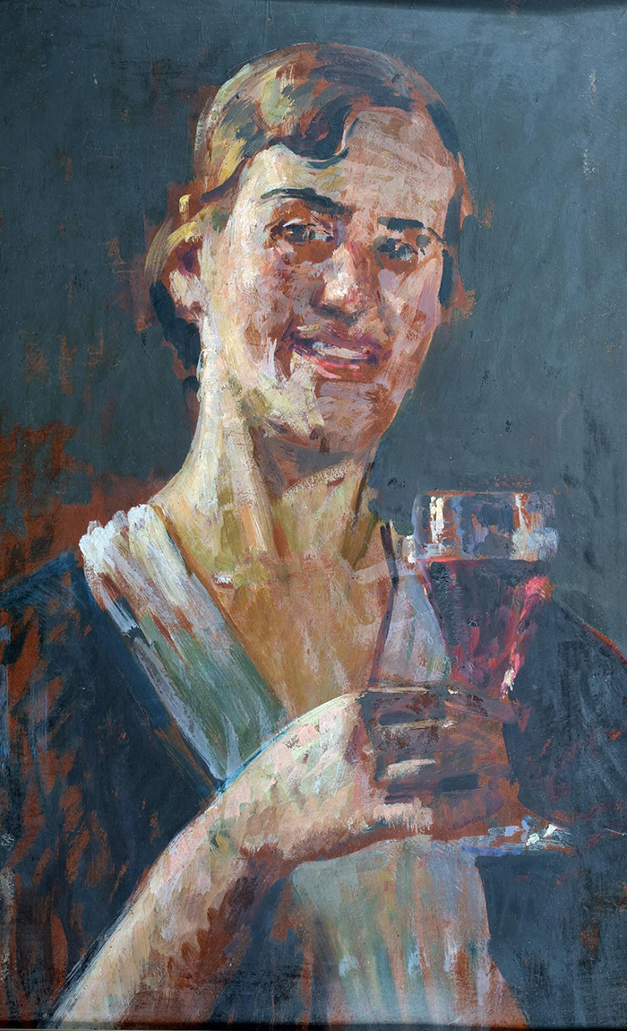 Ricchizzi Gaetano (Napoli 1879 - 1950) Il calice di vino olio su cartone, cm 67x44 firmato in alto a sinistra: Gaetano Ricchizzi