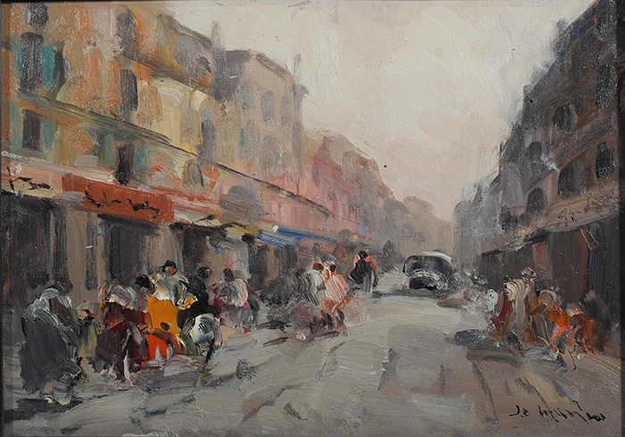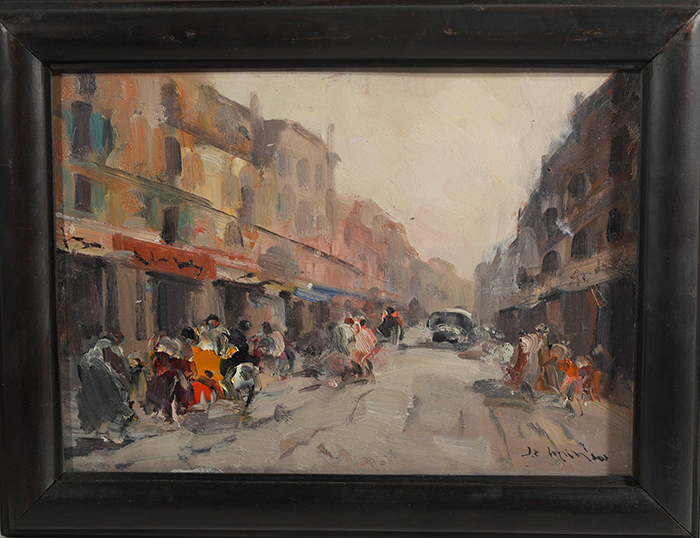Di Marino Francesco (Napoli 1892 - 1954) Strada di Napoli olio su tavola, cm 25x35 firmato in basso a destra: Di Marino