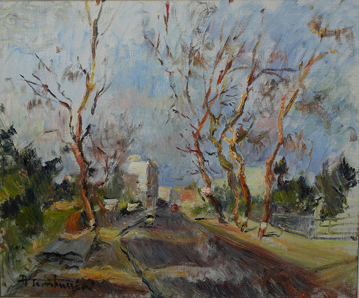 Tamburrini Amerigo ( Napoli 1901 - 1966) Strada alberata olio su tela, cm 50x60 firmato in basso a sinistra: A. Tamburrini