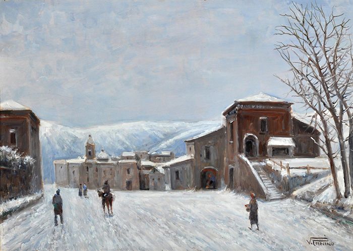 Canino Vincenzo (Napoli 1892 - 1978) Strada di paese olio su tavola, cm 25x35 firmato in basso a destra: V. Canino