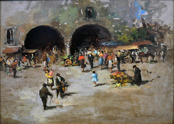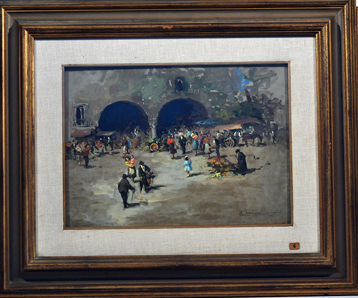 Miraglia Ermogene (Napoli 1907 - 1964) Mercato olio su tavola, cm 26,5x37 firmato in basso a destra: E. Miraglia