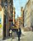 Scorzelli Eugenio (Buenos Aires - Argentina 1890 - Napoli 1958) Via Mezzocannone in ricostruzione olio su tela, cm 67x55 firmato in basso a sinistra: Eug. Scorzelli