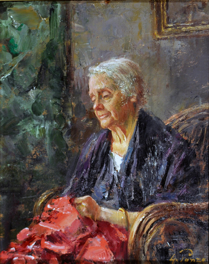 Panza Giovanni (Napoli 1894 - 1989) Ritratto olio su tavola, cm 32x25 firmato in basso a destra: G. Panza