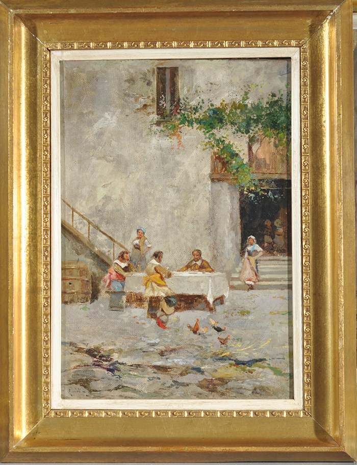 Ricciardi Oscar (Napoli 1864 - 1935) Osteria olio su tela, cm 33x23 firmato in basso a sinistra: Ricciardi