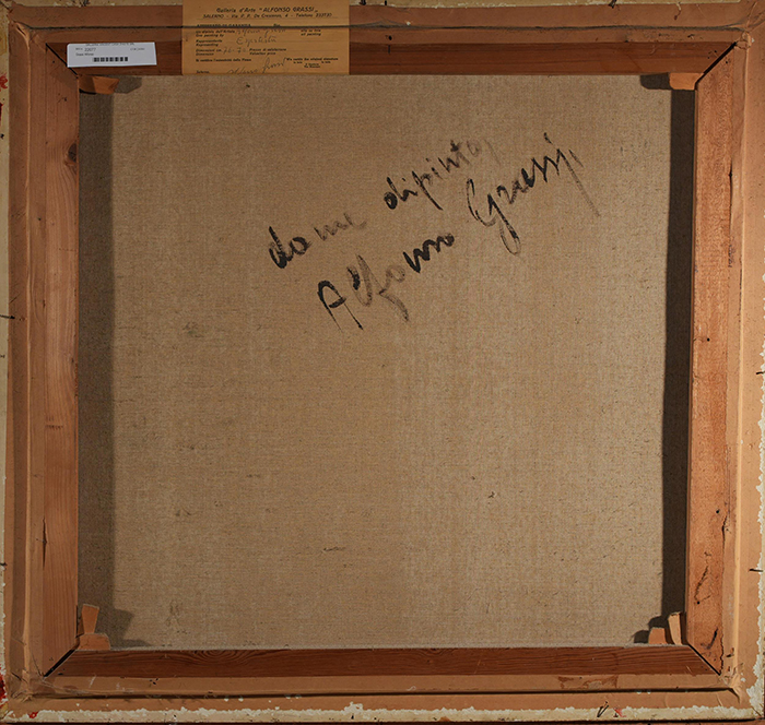Grassi Alfonso (Solofra, AV 1918 - Salerno 2002) Espertista olio su tela, cm 76x70 firmato in alto a sinistra: Alfonso Grassi a tergo: cartiglio Galleria d'arte Alfonso Grassi, Salerno; iscritto: da me dipinto Alfonso Grassi