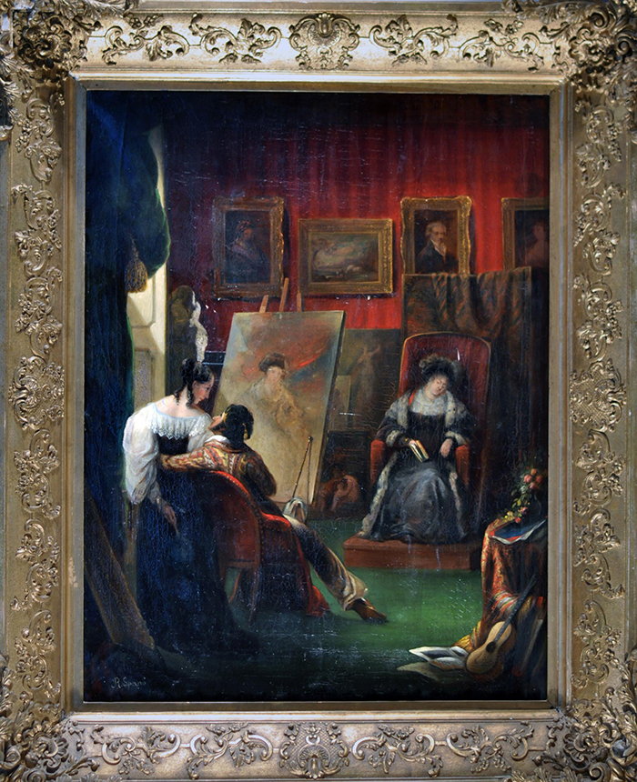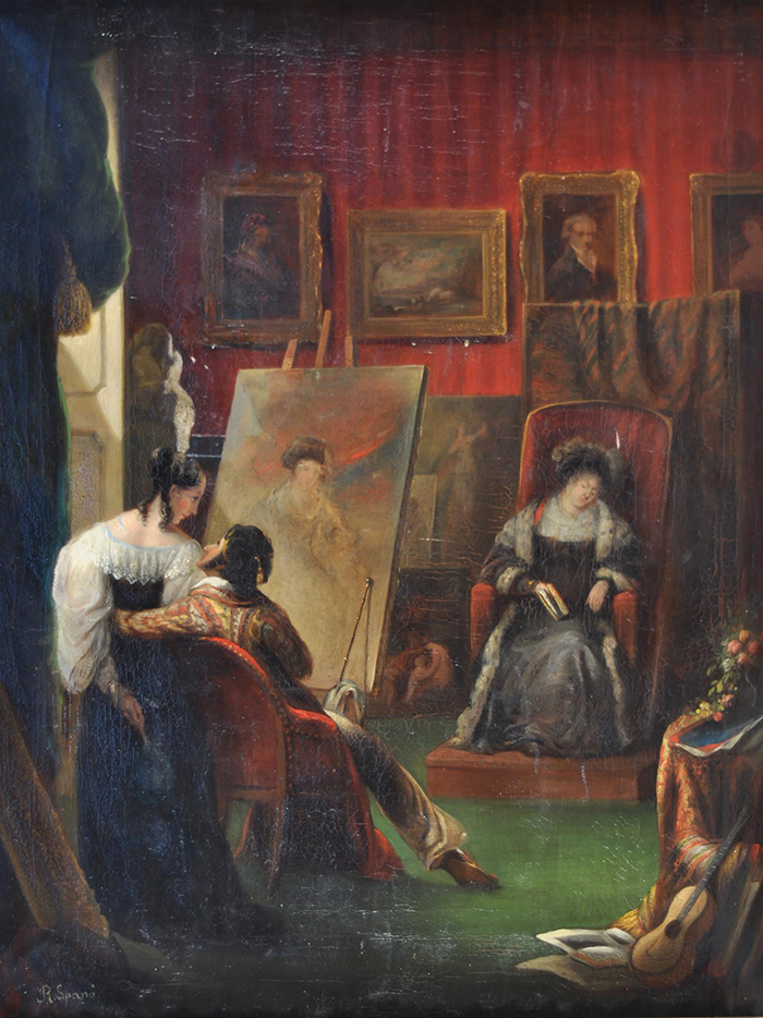 Spanò Raffaele (Napoli 1817-1863) Nello studio del pittore olio su tela cm 92x71,5 firmato in basso a sinistra: R.Spanò