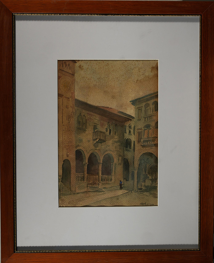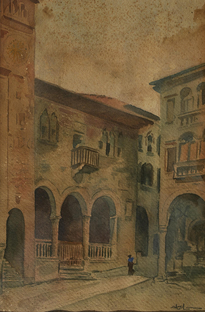 Autore non ident inizi XX secolo Scorcio di città acq. su carta, cm 34x23 iscritto in basso a destra