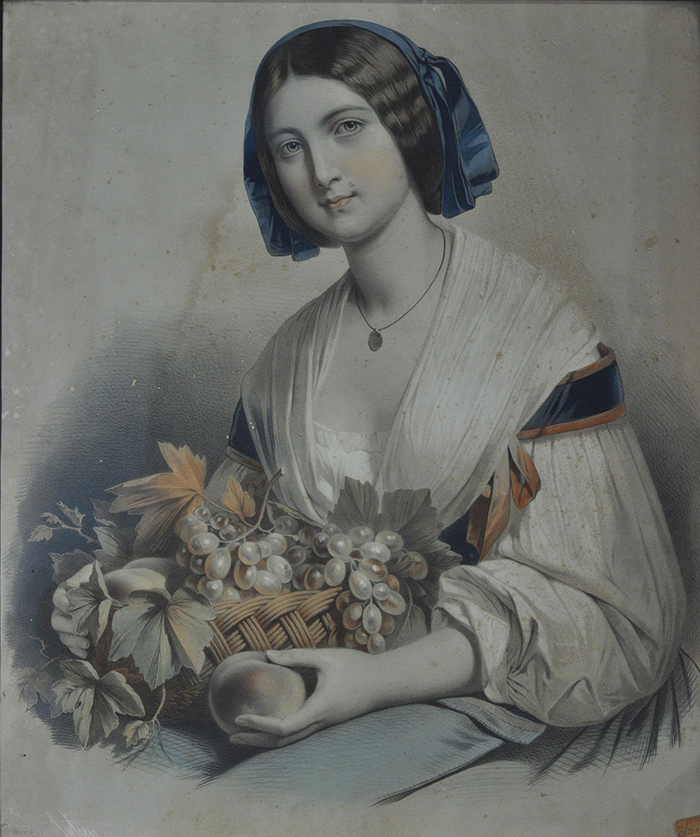 Julien (XIX secolo) Donna elegante cromolitografia, cm 56,5x47 firmato in basso a sinistra: Julien