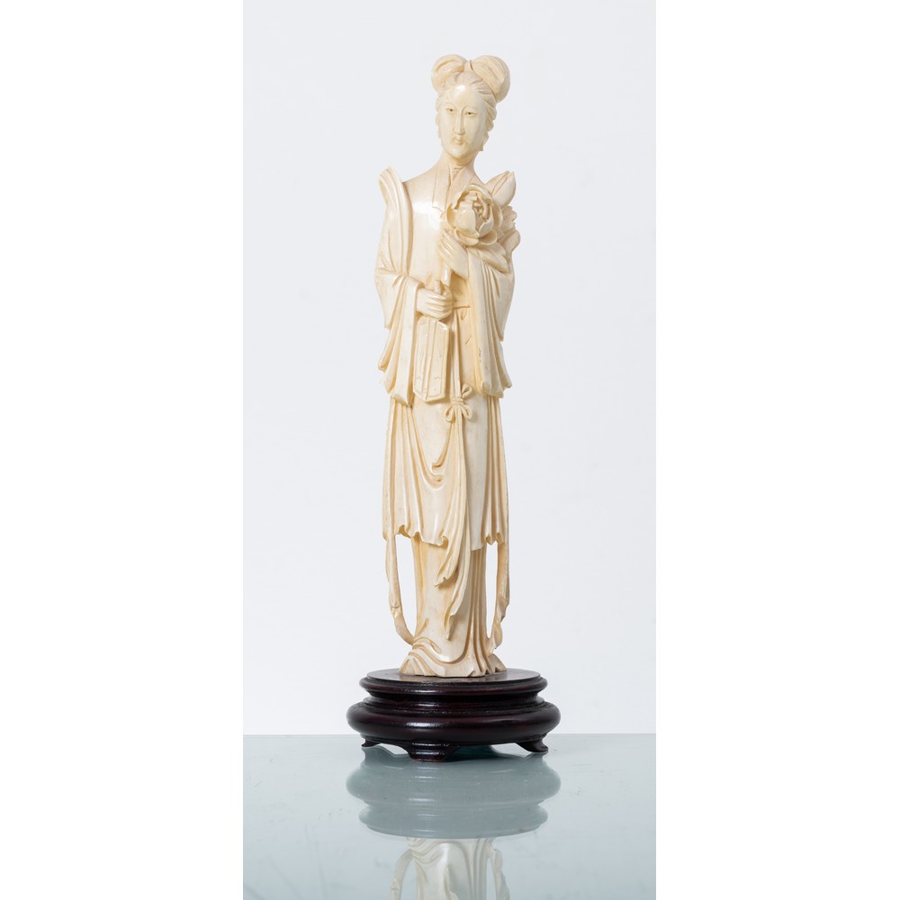 Scultura in avorio raffigurante "Figura femminile" su base in legno. L'opera è corredata di certificato Cites.
