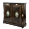Piccola credenza in legno ebanizzato con placche in porcellana di Sevres dipinta a mano raffiguranti "Scene galanti", riccamente guarnita in bronzo dorato.
