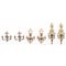 SEI APPLIQUE in metallo dorato di cui quattro a due luci e due a tre luci.