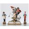 Gruppo in porcellana e biscuit raffigurante "Napoleone a cavallo" firmato Corti e due sculture in porcellana raffiguranti "Ufficiali napoleonici" firmati B. Merli.